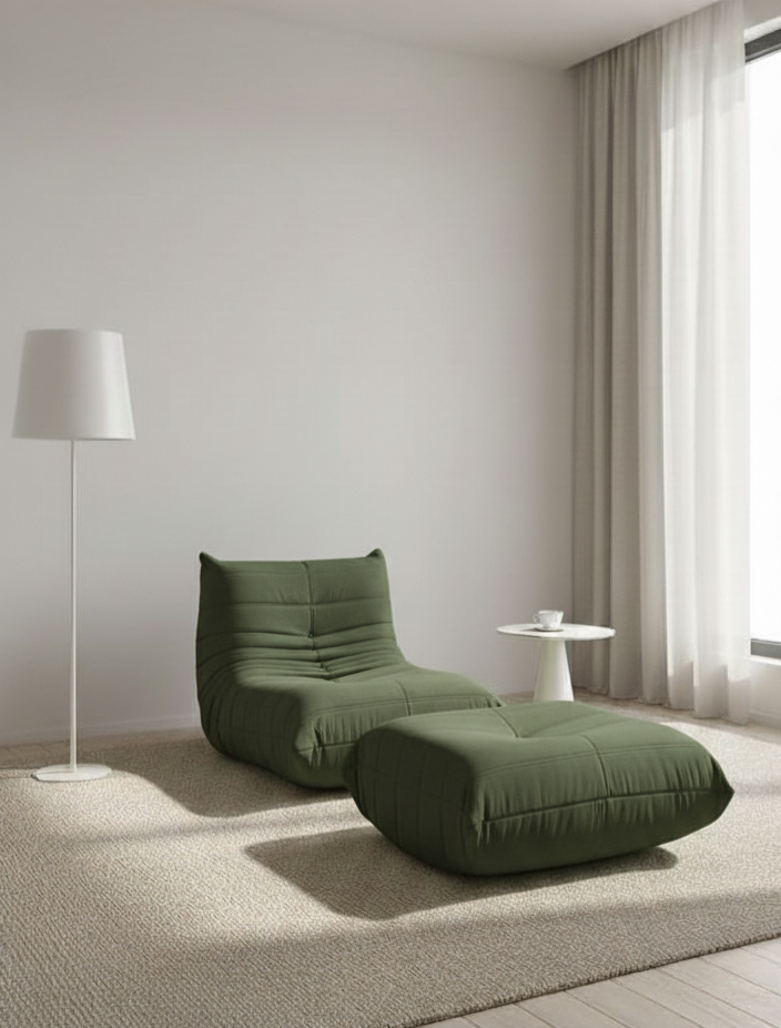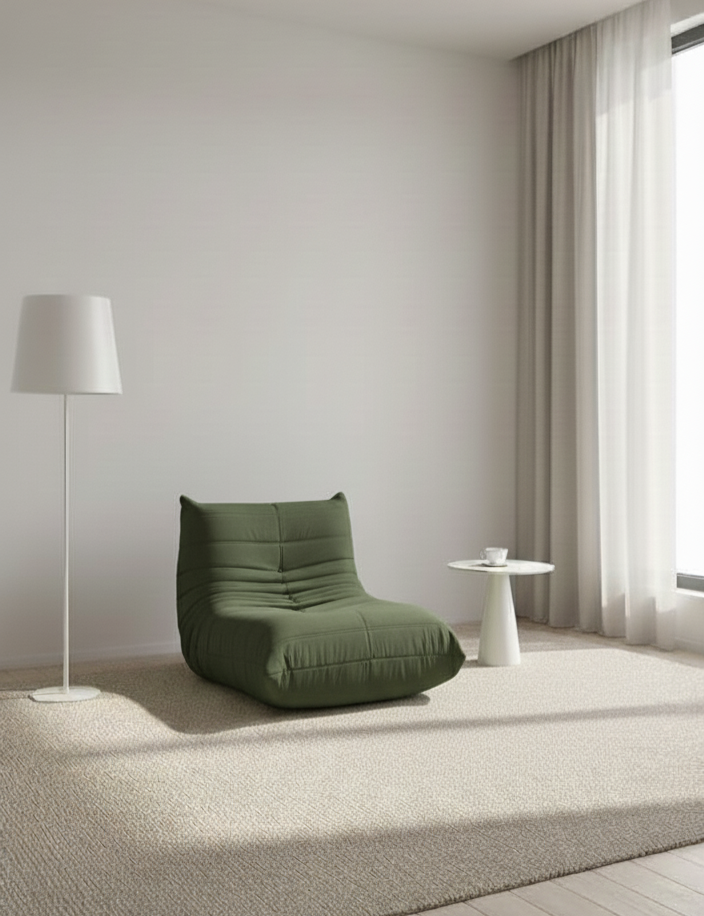 Transform your living area into a haven of style and relaxation with the Aervia Cocoon, a contemporary compressed bean bag chair designed for ultimate comfort. Inspired by the natural curves of a cocoon, its unique caterpillar-like shape adapts to your body, providing personalized support that makes every seating experience luxurious. Whether you're unwinding after a long day or enjoying a good book, this chair molds to you for unmatched coziness.